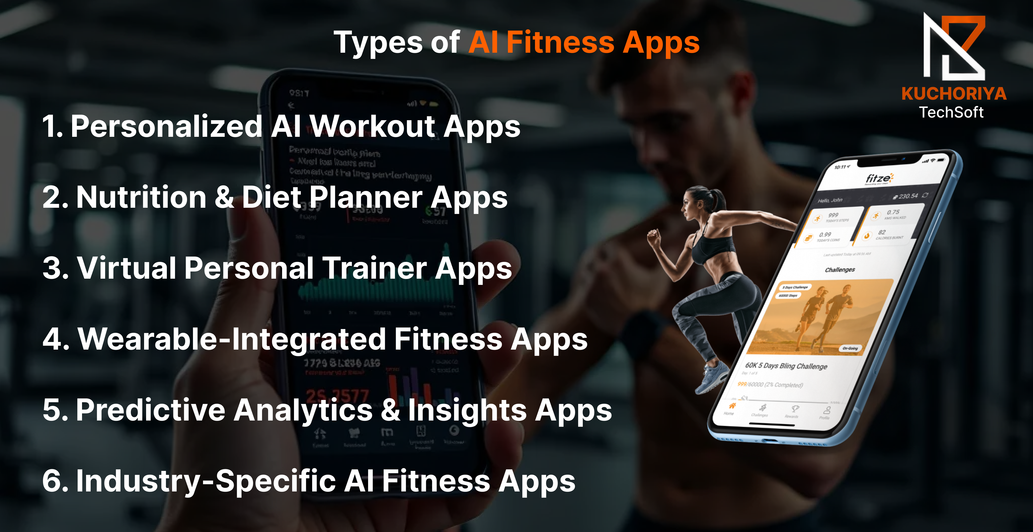 AI fitness apps come in various forms, each designed to cater to different user goals and business needs. Understanding these types helps brands choose the right approach for AI fitness app development in 2026.