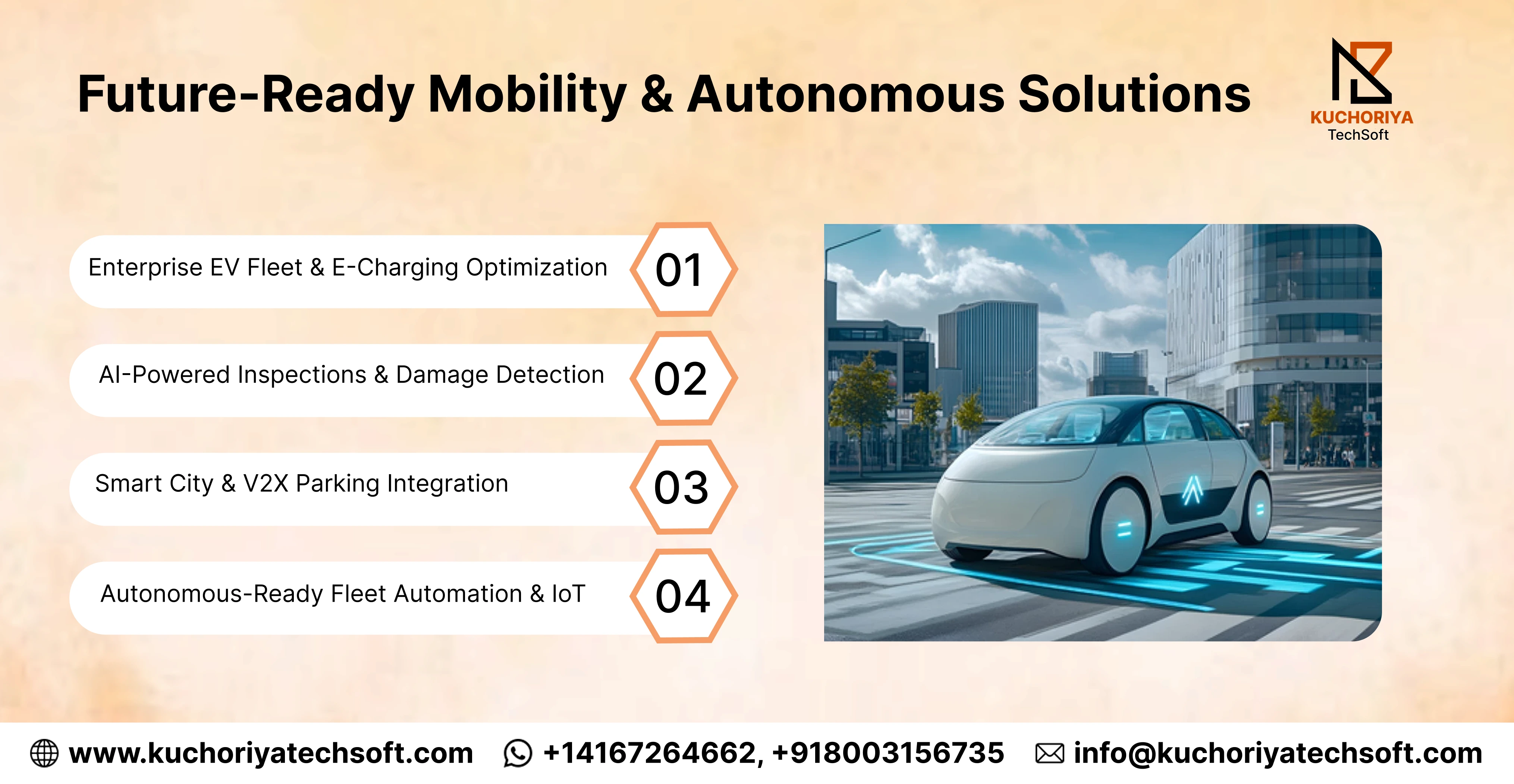 At Kuchoriya TechSoft, we combine AI consulting services with deep-tier custom automotive digital solutions to ensure your business stays ahead of the curve. From on-demand car rental app development in Canada to luxury fleet systems in the UAE, our goal is to turn your mobility vision into a high-ROI reality.
