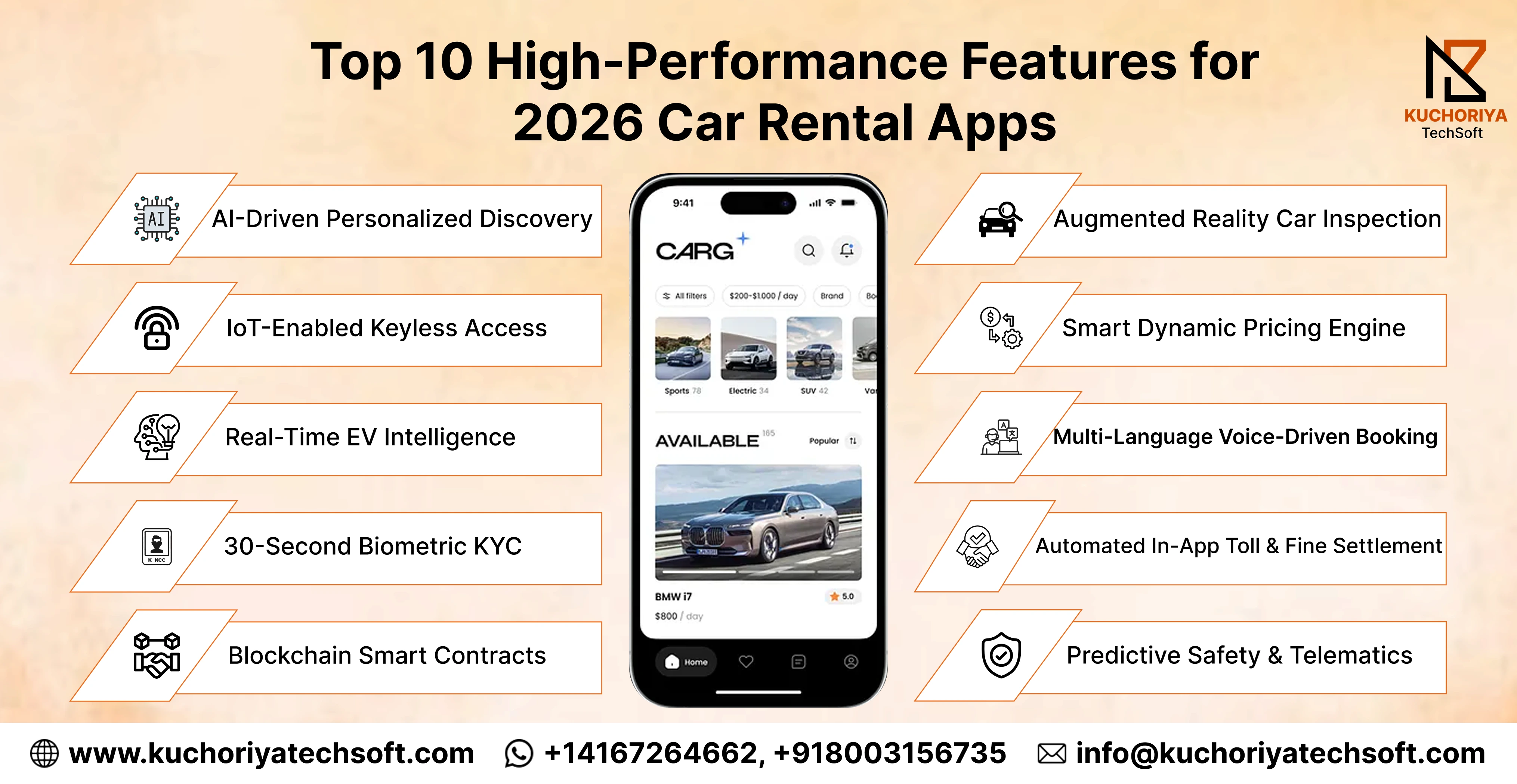 As a leading car rental app development company in the UAE and beyond, Kuchoriya TechSoft delivers localized solutions for diverse markets.
