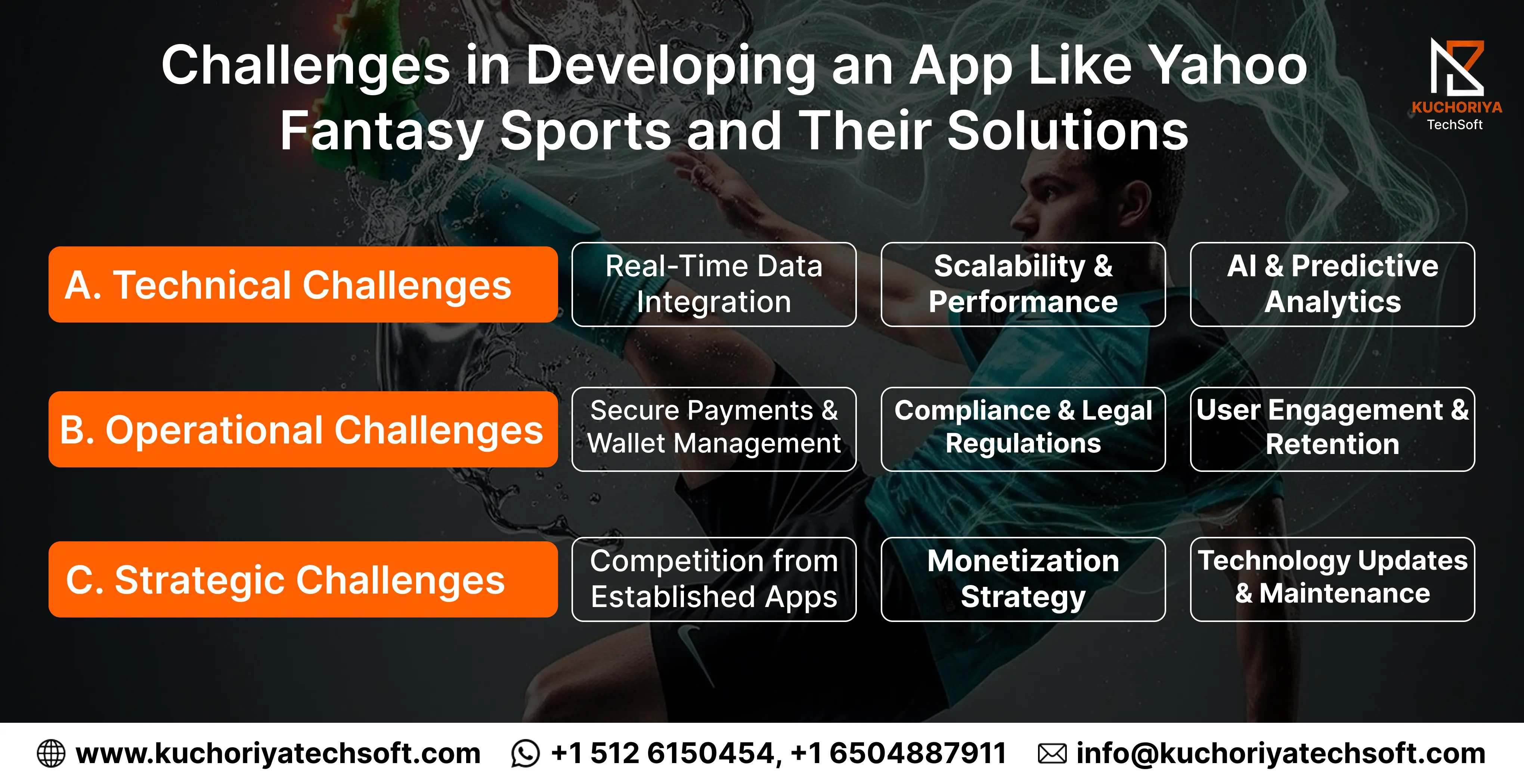 Creating a fantasy sports app like Yahoo Fantasy Sports involves technical, operational, and strategic challenges. Kuchoriya TechSoft specializes in building apps like Yahoo Fantasy Sports for global audiences, including those in the USA, the UK, Canada, and Dubai, ensuring seamless user experience, secure payments, and advanced analytics.