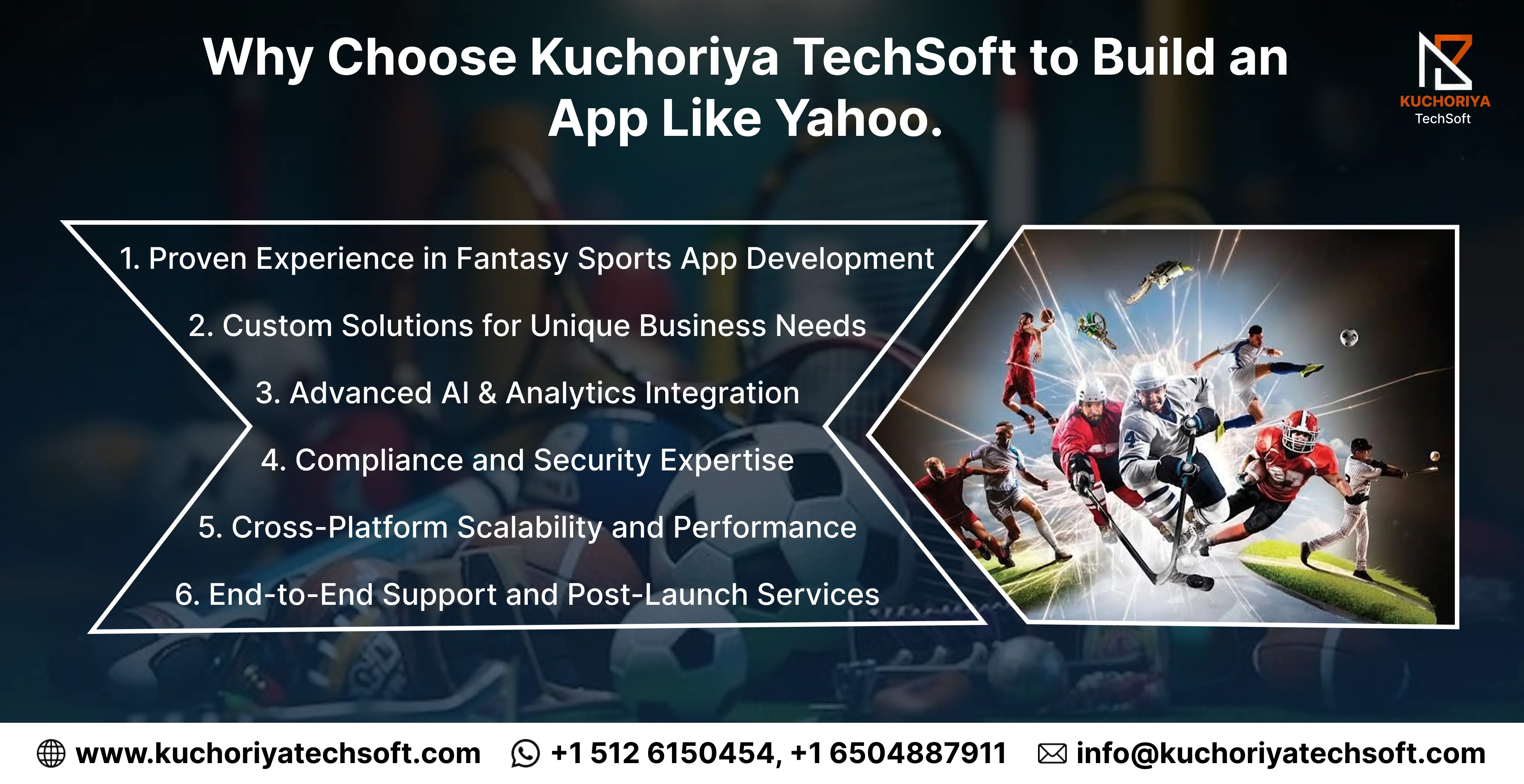 Developing a fantasy sports app like Yahoo Fantasy Sports requires experience, technical expertise, and a deep understanding of user behavior. Kuchoriya TechSoft offers end-to-end solutions for businesses in the USA, UK, Canada, and Dubai, ensuring apps are scalable, secure, and engaging.