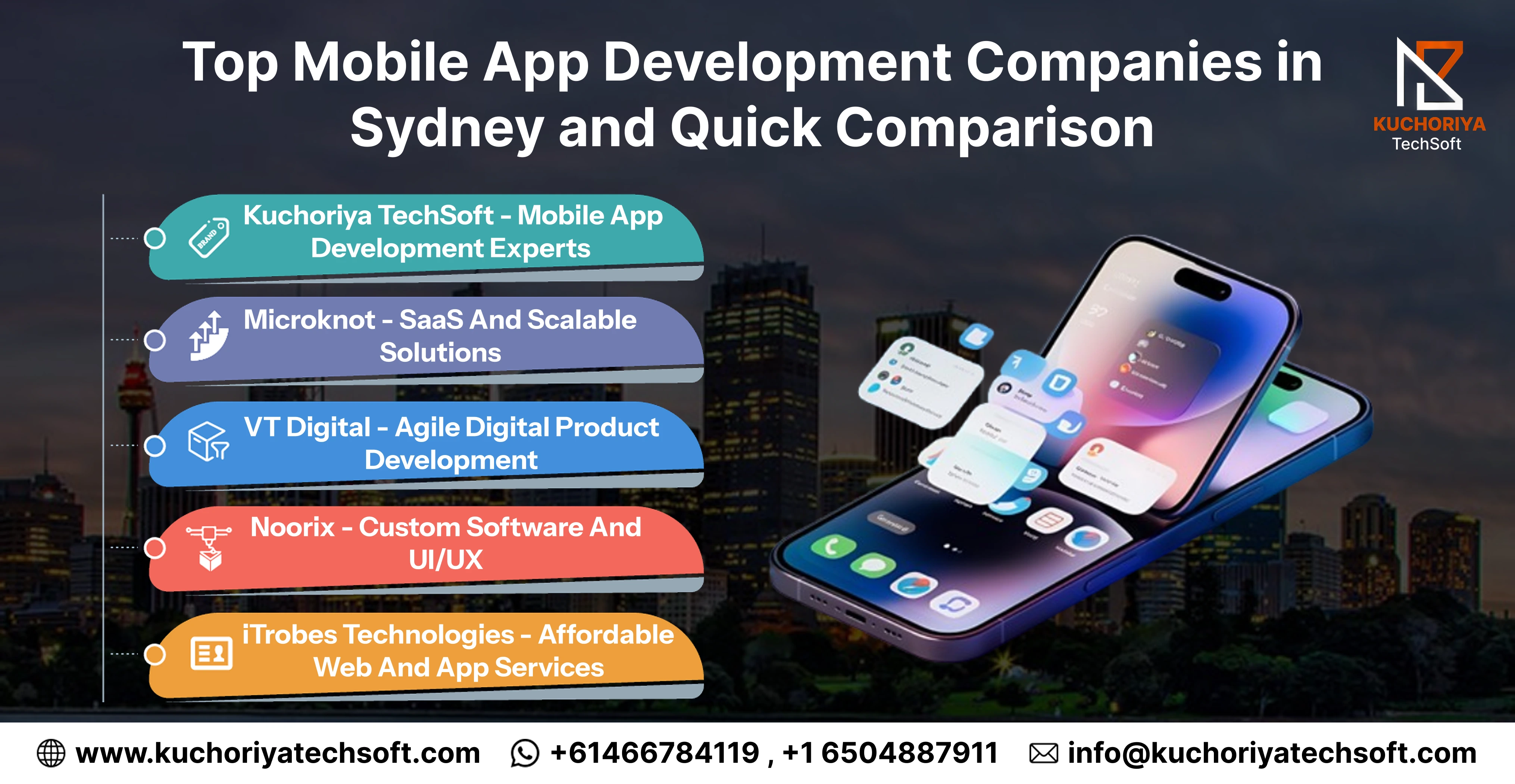 About Company: Kuchoriya TechSoft is a globally recognized mobile app development company with a strong presence in Sydney, delivering high-performance digital products for startups and enterprises. With over a decade of experience, the company has built a reputation as Sydney’s leading software development company, offering innovative, scalable, and business-driven solutions.