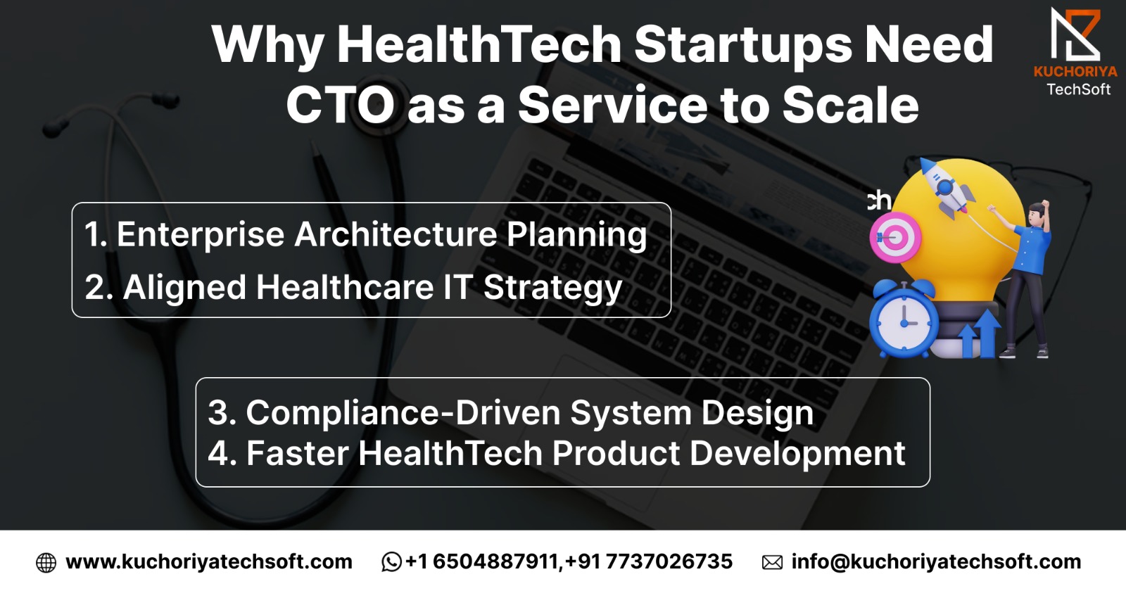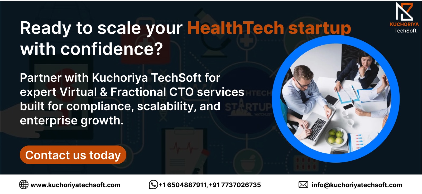Kuchoriya TechSoft provides healthcare-focused technology leadership through virtual CTO and fractional CTO services, helping startups scale securely, stay compliant, and become enterprise-ready.