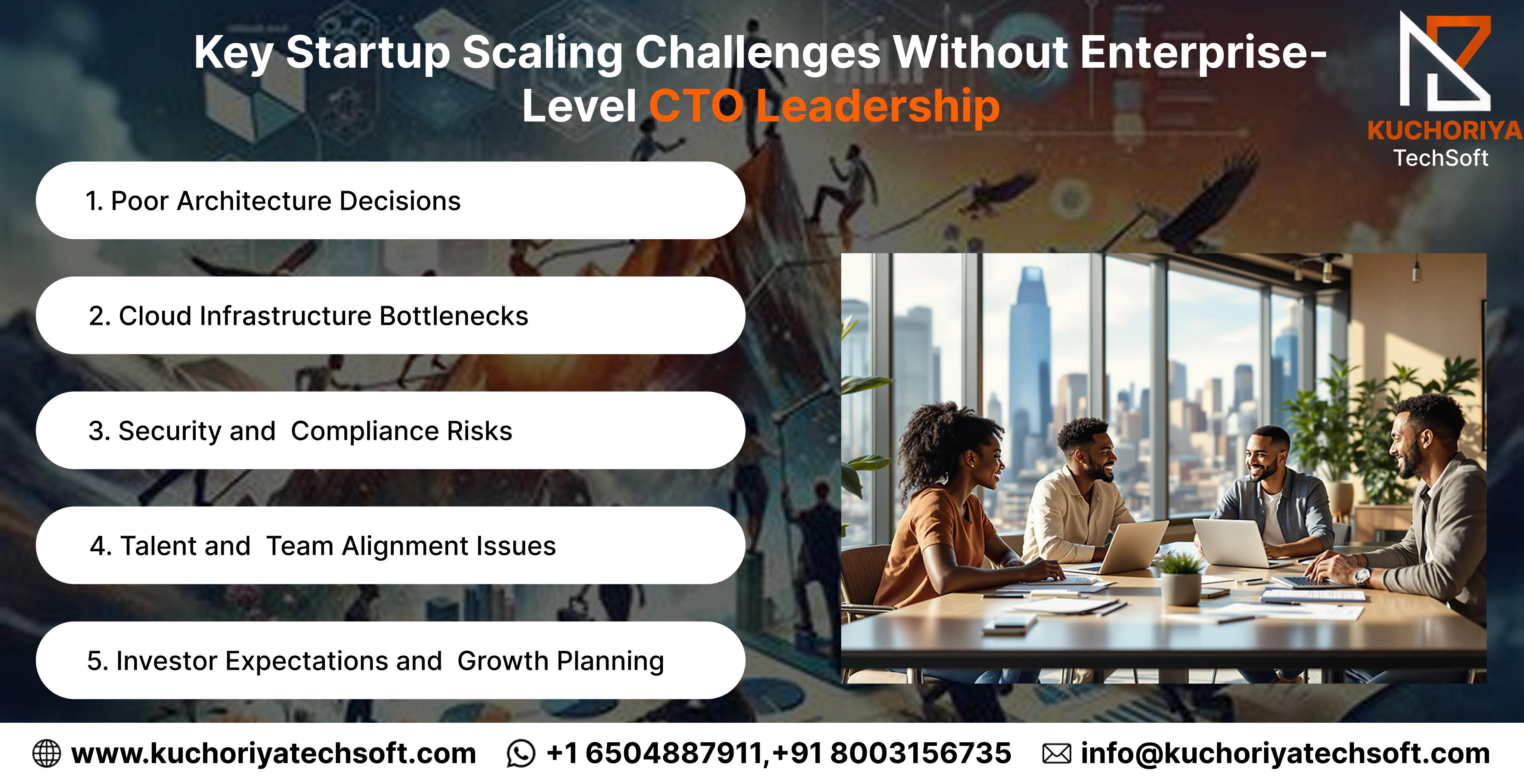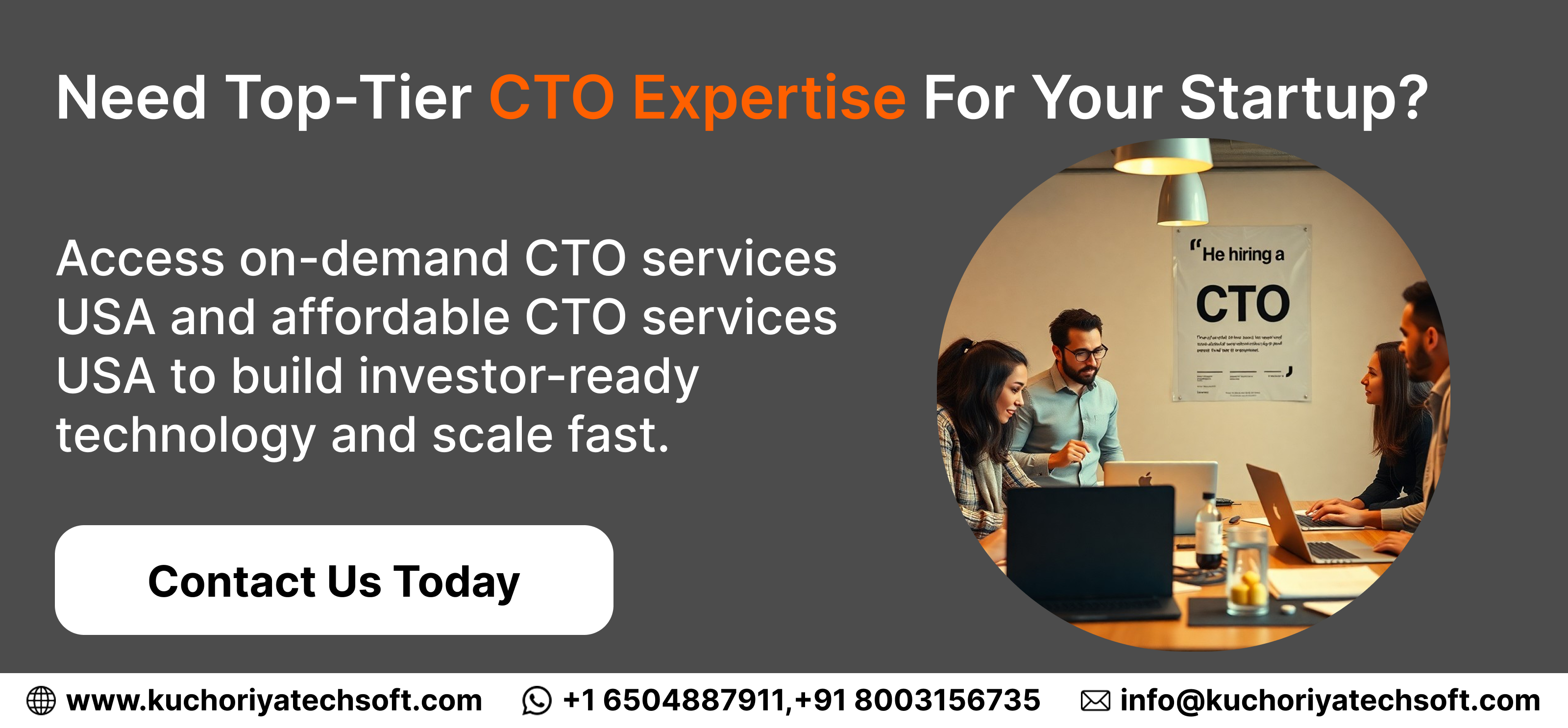 Take action today — Contact Us to schedule a startup CTO strategy call or join our Referral Partner Program to grow your network and unlock new opportunities. With Kuchoriya Techsoft, your startup can scale like an enterprise from day one.
