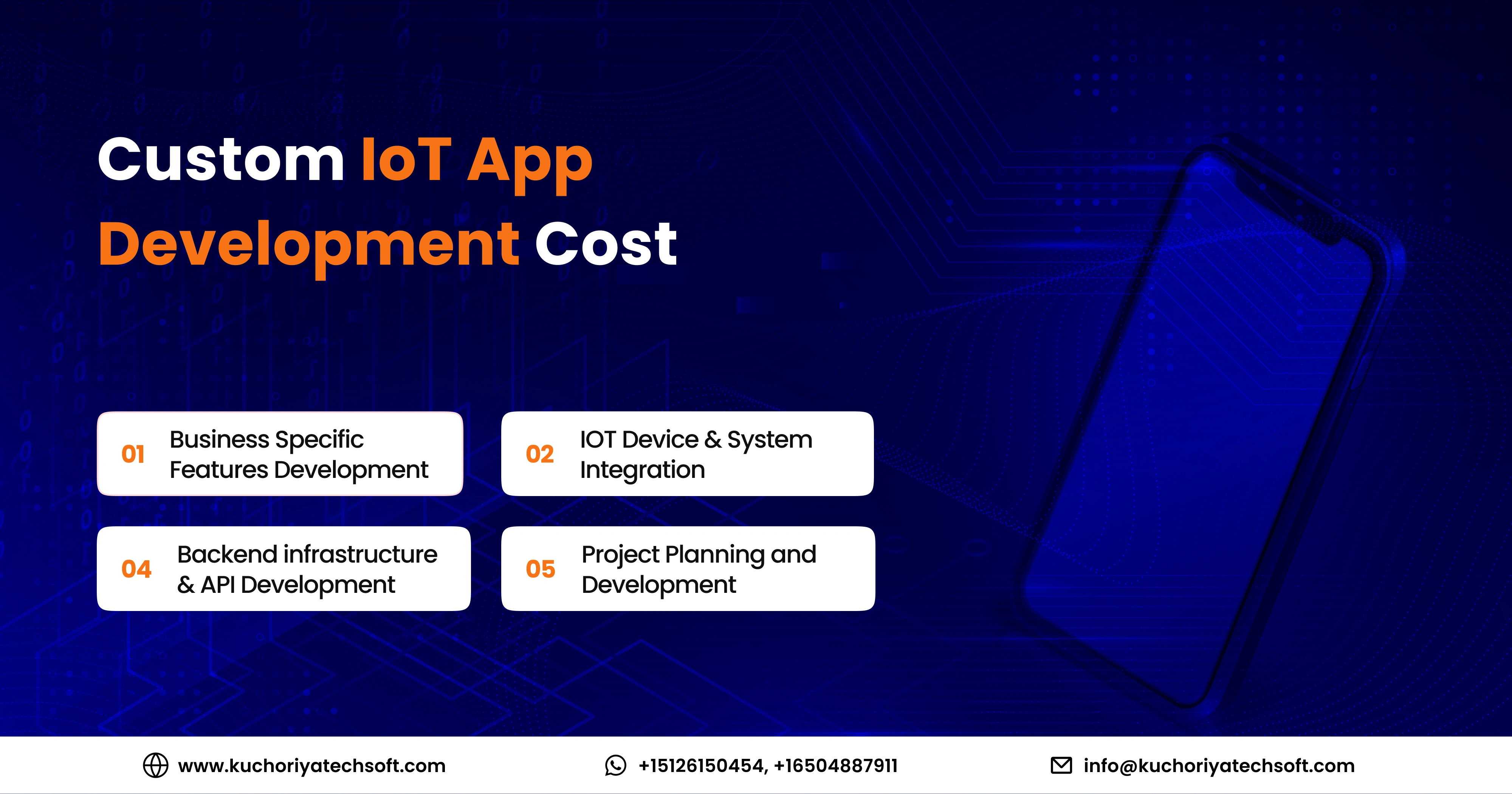 Understanding the IoT App Development Cost requires analyzing the key factors that influence pricing. From app complexity to hardware integration, each element plays a crucial role in the overall investment. Working with an experienced IoT app development services company like Kuchoriya TechSoft ensures efficient solutions and cost-effective planning.