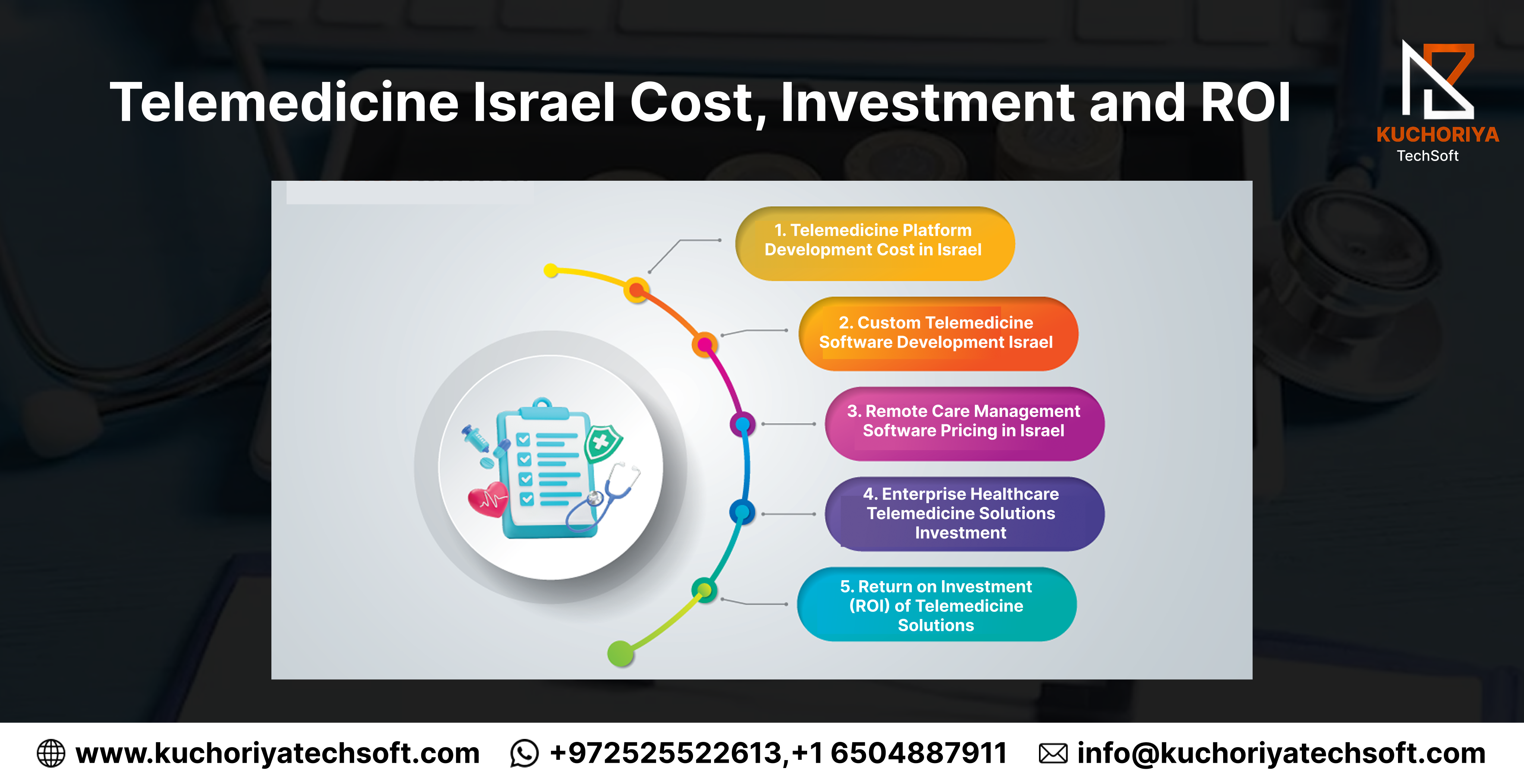 Telemedicine investment planning in Israel requires balancing technology, compliance, scalability, and long-term ROI. Kuchoriya TechSoft helps healthcare providers accurately estimate the telemedicine platform development cost in Israel while ensuring sustainable growth and measurable financial returns.