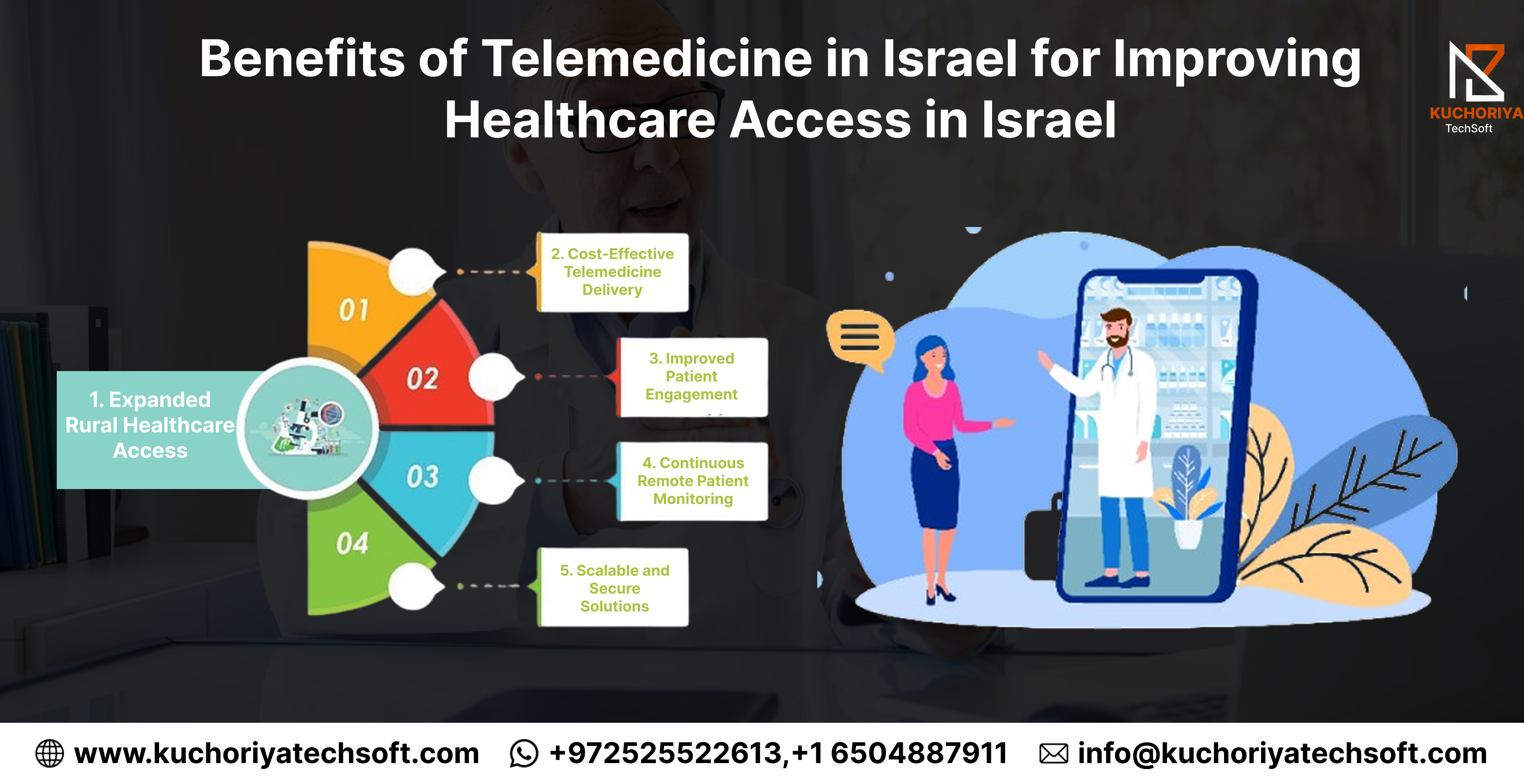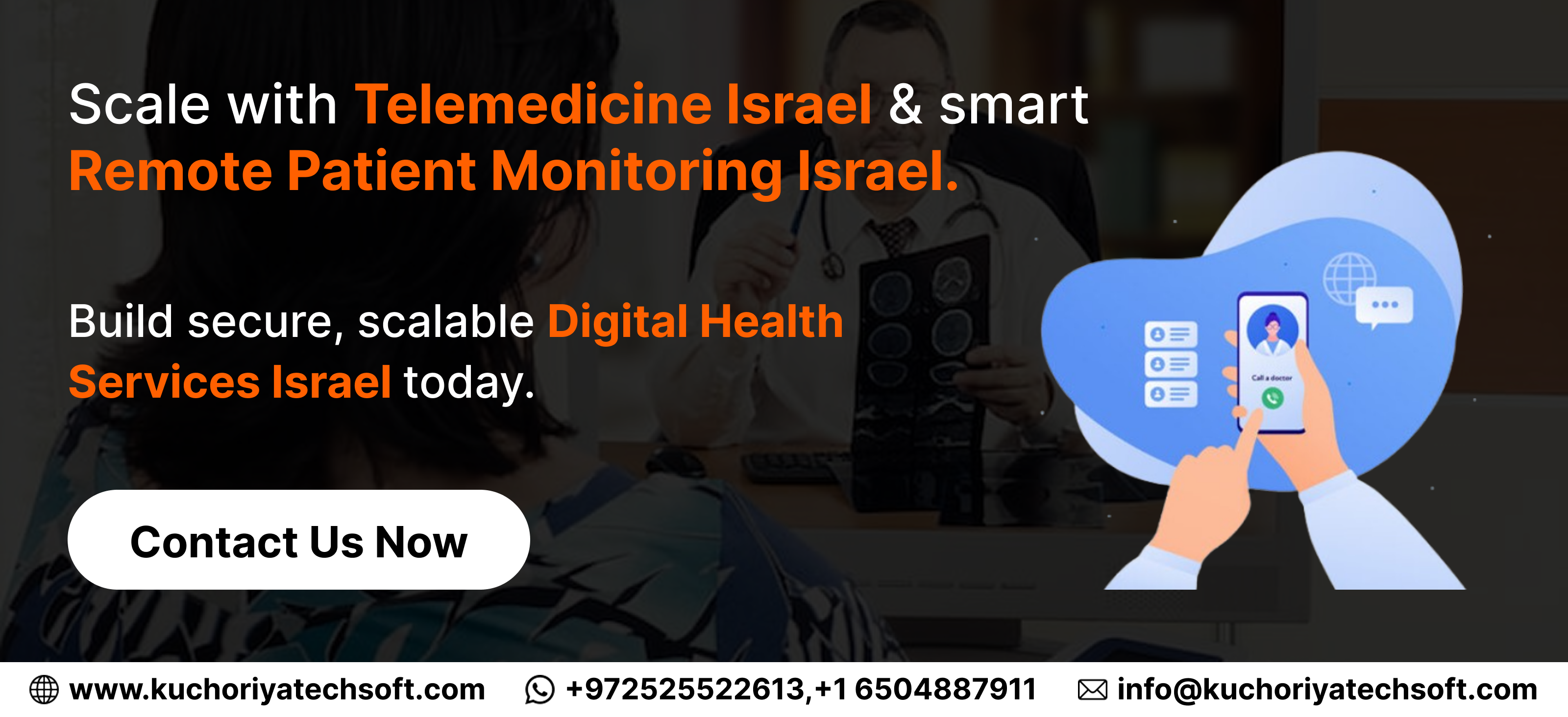 Telemedicine is revolutionizing healthcare access across Israel, making care faster, smarter, and more efficient. Kuchoriya TechSoft provides the best telemedicine solutions in Israel and AI-powered telehealth solutions in Israel that enhance patient engagement, reduce costs, and expand coverage nationwide.