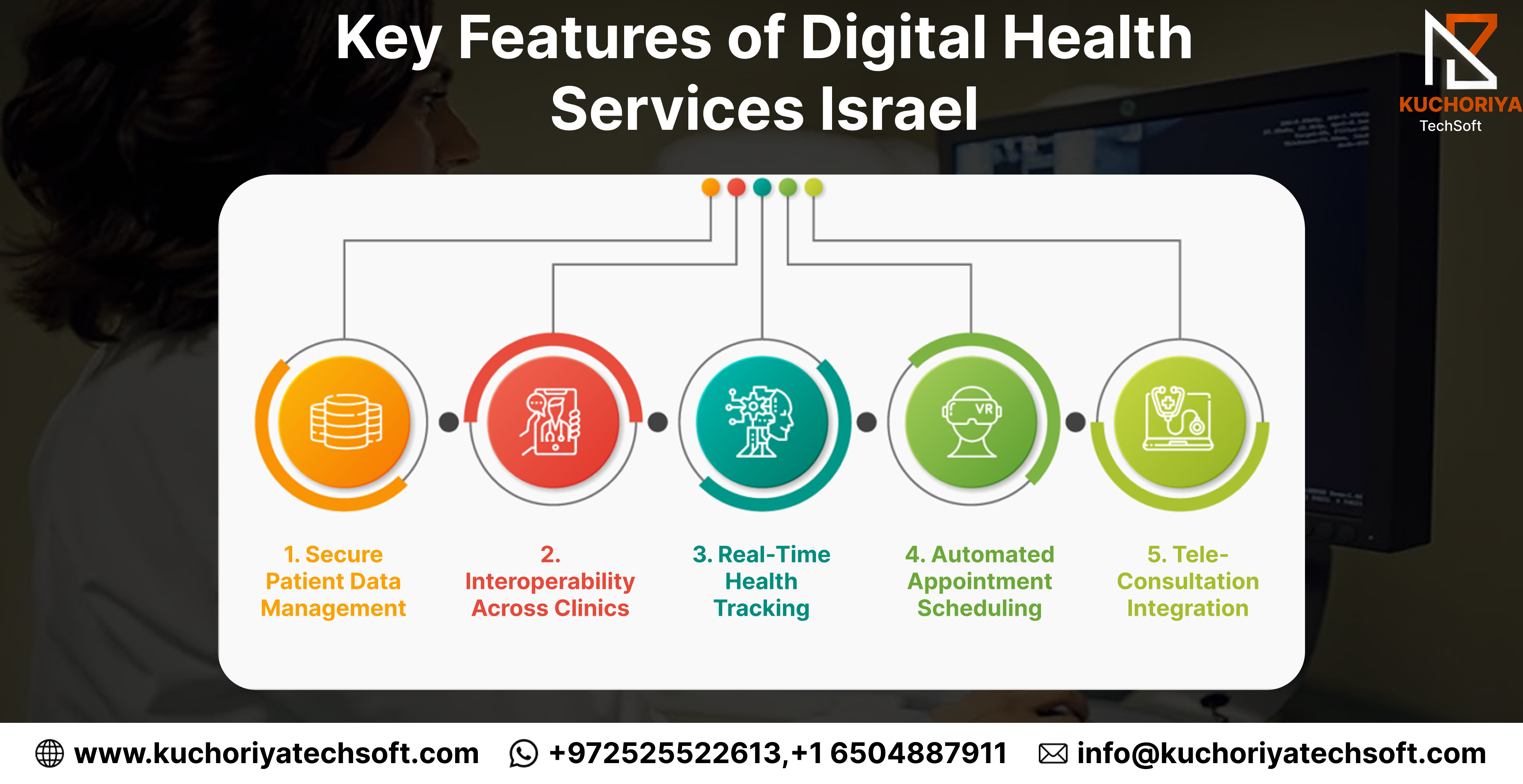 Israel’s digital health ecosystem is redefining patient care, blending technology, convenience, and efficiency. Kuchoriya TechSoft enables clinics and hospitals to leverage cloud-based telehealth infrastructure, making healthcare smarter, faster, and more connected.