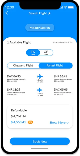 We create powerful flight booking app development solutions with advanced features like real-time flight availability, multi-payment options, and instant booking confirmations.