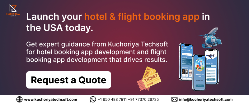 Partnering with Kuchoriya Techsoft, a leading hotel booking app development company in the USA and flight booking system development in California, USA, gives you access to top hotel booking app developers in Florida and expert teams to hire travel app developers in California, USA. You can contact us, request a quote, or join our referral partner program to leverage our end-to-end solutions.