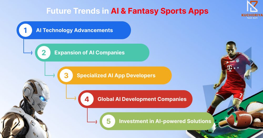The future of fantasy sports is powered by AI, offering smarter predictions, personalized experiences, and global scalability. Kuchoriya Techsoft stays ahead by integrating emerging trends to keep apps innovative and engaging.