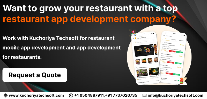 Looking to boost your reach? Request a quote today and discover how we can tailor your app to local and global markets—from Riyadh and Dubai to Germany and California. Join our Referral Partner Program and collaborate with us to create cutting-edge solutions that stand out in a competitive landscape. With restaurant mobile app development services, virtual CTO support, and industry-leading strategies, Kuchoriya Techsoft is your ultimate partner for success in the digital restaurant space.