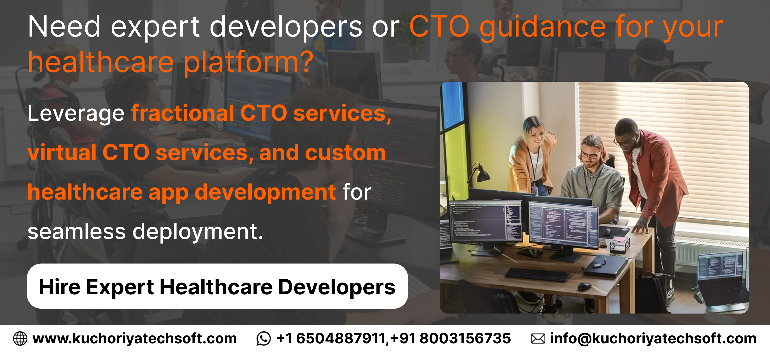 Engaging fractional CTO services for healthcare startups or virtual CTO services for healthtech companies helps organizations select optimal tech stacks, ensure scalability, and plan future-proof EHR/EMR integrations. Kuchoriya Techsoft guides healthcare providers through a technical strategy to maximize system ROI.