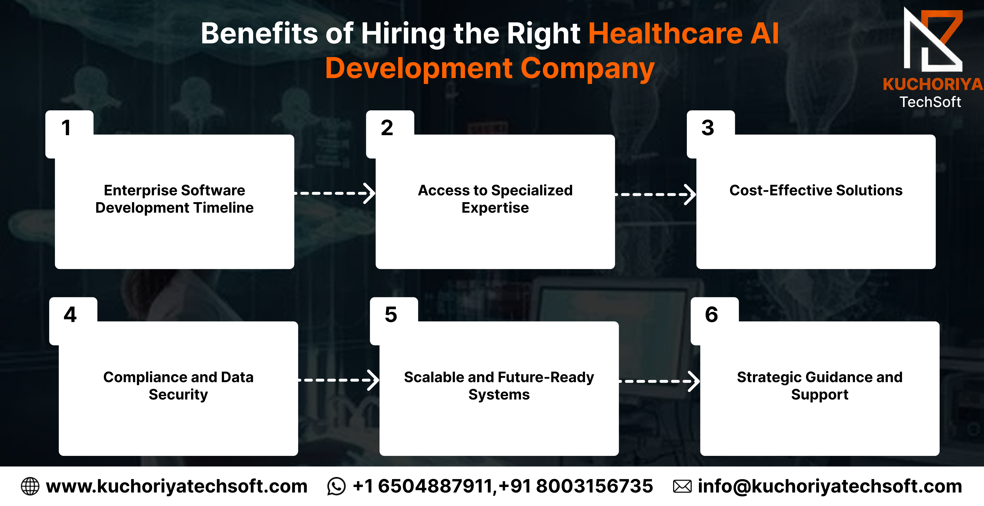A company offering responsive support, transparent communication, and alignment with organizational goals is essential. Kuchoriya TechSoft emphasizes collaborative development and post-deployment support to guarantee operational efficiency and AI powered healthcare systems.