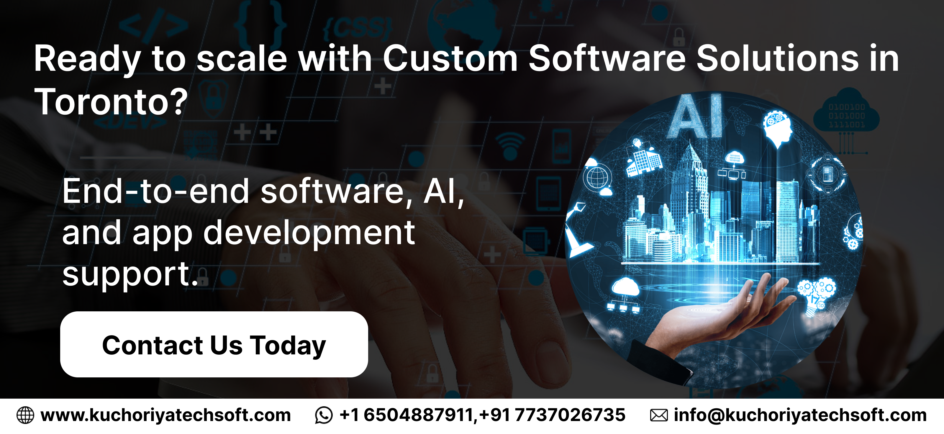 Kuchoriya TechSoft is recognized among the Top Software Development Companies in Toronto 2026 for delivering custom software solutions in Toronto that balance innovation, scalability, and cost efficiency. With strong expertise across Software Development, SaaS Development, Mobile App Development Toronto, and AI Software Development Companies Toronto, the company supports startups and enterprises at every stage of digital growth.