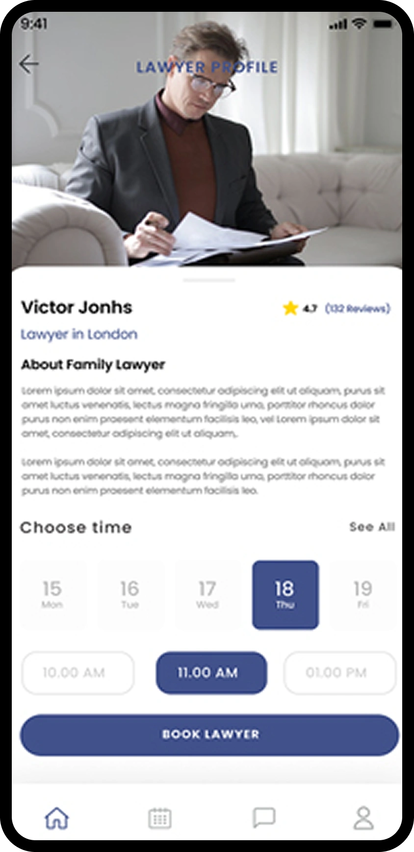 The design quality of a legal service mobile application directly affects user experience and client engagement. Professional UI/UX design for lawyer apps focuses on intuitive navigation, accessible interfaces, and smooth interactions that encourage users to book consultations and use legal services regularly.