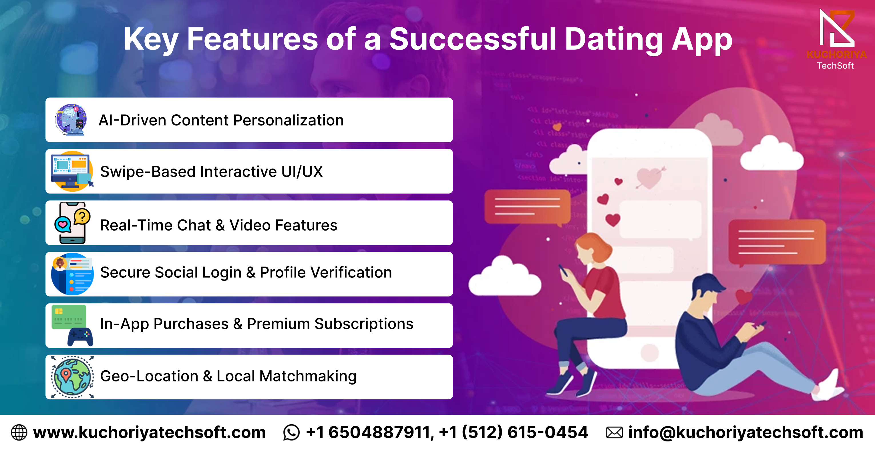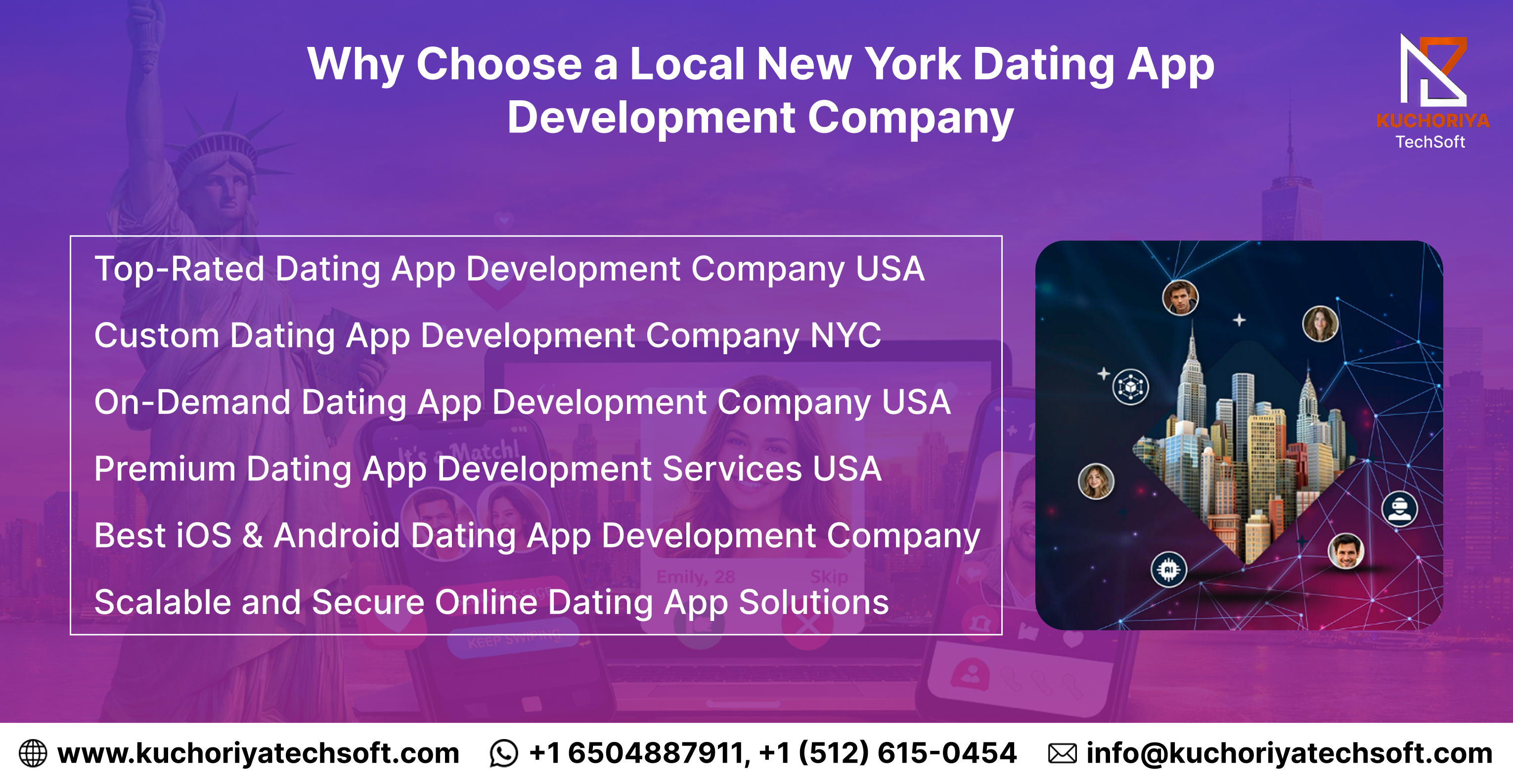 That’s where Kuchoriya Techsoft comes in. As a trusted partner offering premium dating app development services and iOS & Android dating app development USA, the focus is not just on building an app, but on creating a product that attracts users, retains them, and generates revenue. In a market where competition is increasing every day, working with experienced dating app developers in New York gives businesses the strategic edge needed to launch faster and grow smarter.
